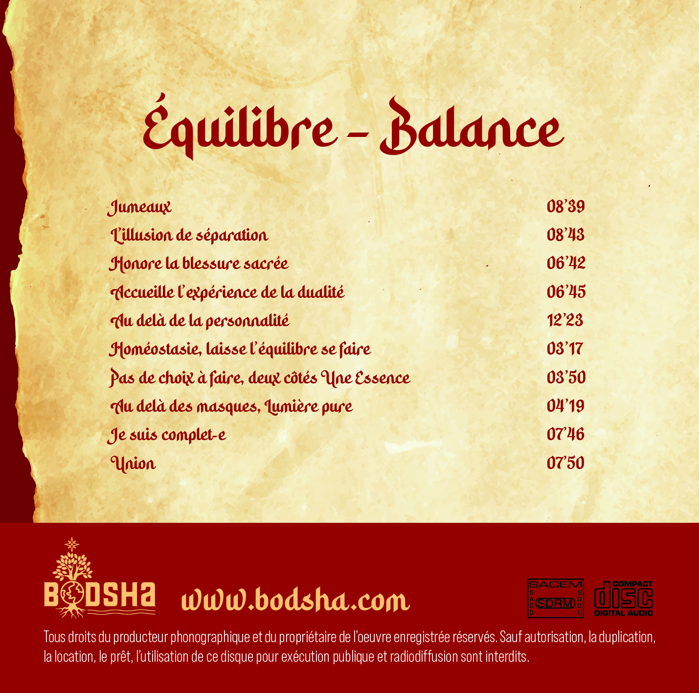 Cet album contribue à se rappeler dans tout notre Être, dans toutes nos cellules, que la sensation de séparation est une illusion et qu’au delà de la dualité, il y a l’Unité.